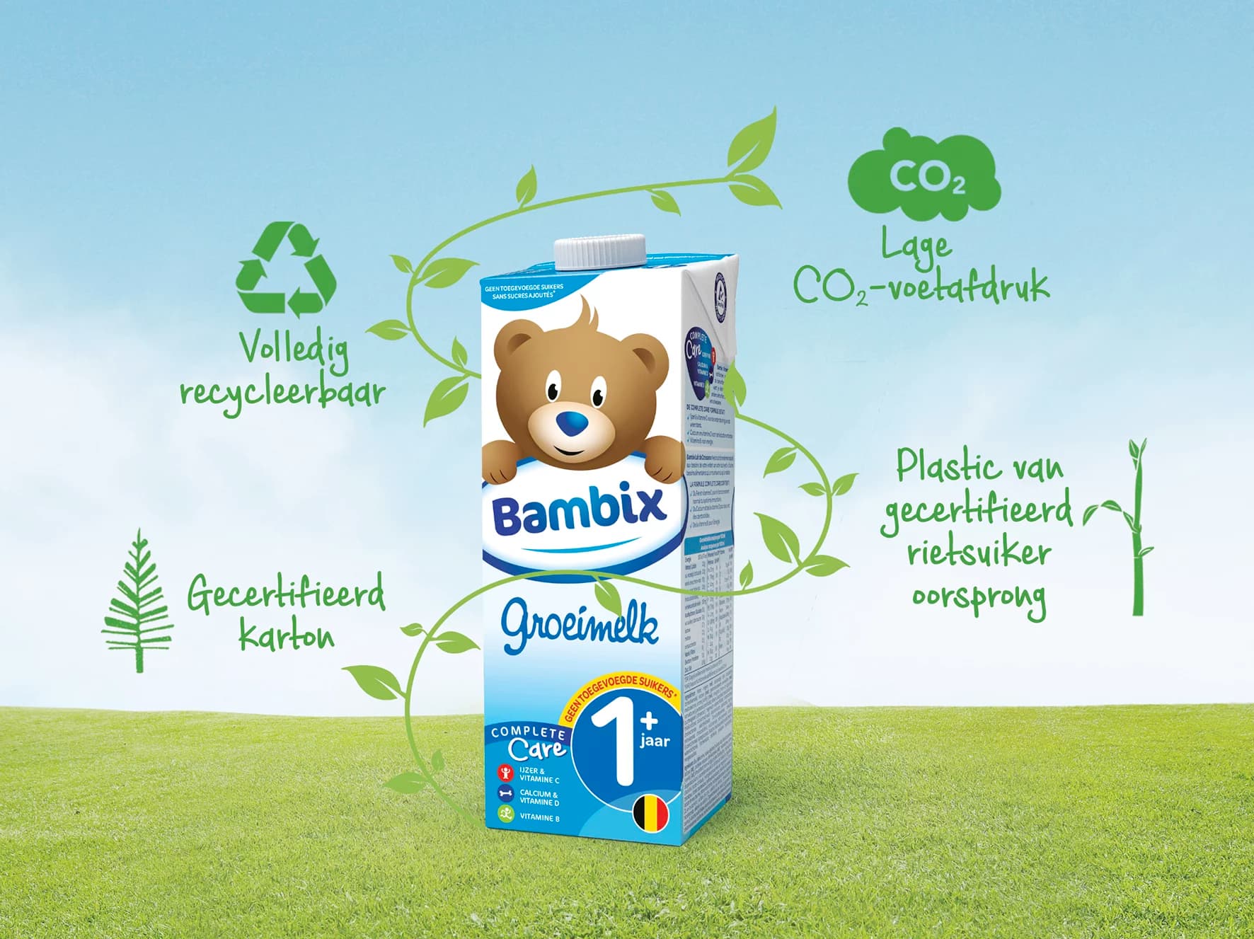 Onze Bambix groeimelken en groeidrinks (1L) worden verpakt in een duurzame bio-based tetra-pack. Deze worden gemaakt van materialen van plantaardige oorsprong en het karton is volledig recycleerbaar. De doppen worden gemaakt van gecertificeerd rietsuiker. Dit alles draagt bij tot een vermindering van CO2-uitstoot.