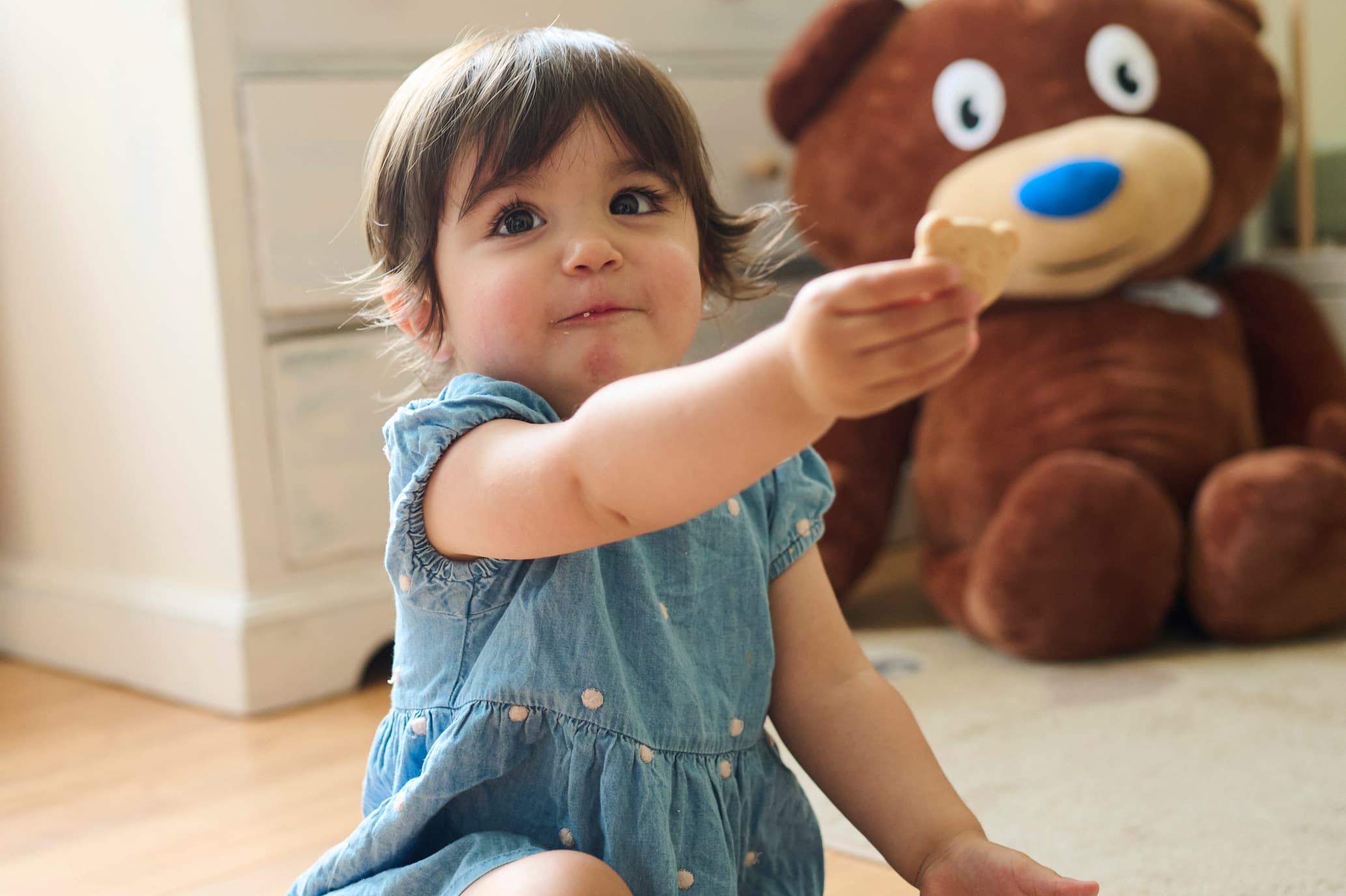 Psst! Is jouw kindje ook fan? Goed nieuws: je vindt onze herkenbare koekjessmaak ook terug in onze groeimelk met koekjes én in een van onze fruitzakjes.